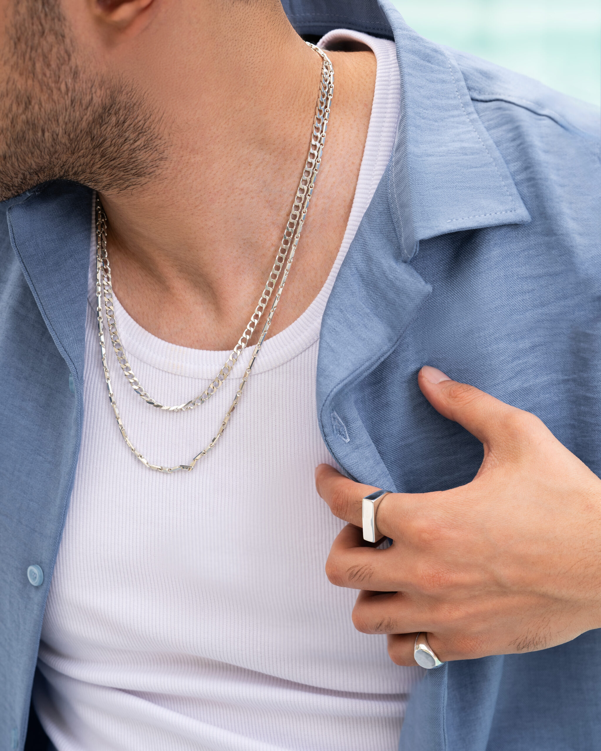 امروز، شایسته مجموعهای از اکسسوریهای نقره برای آقایان و خانمهاست—با تمرکزی خاص بر استایل مردانه. طراحیهای ما مینیمال، تمیز و دقیقاند؛ برای کسانی که به جزئیات اهمیت میدهند و میخواهند با انتخابهای کوچک، تأثیری بزرگ بگذارند.